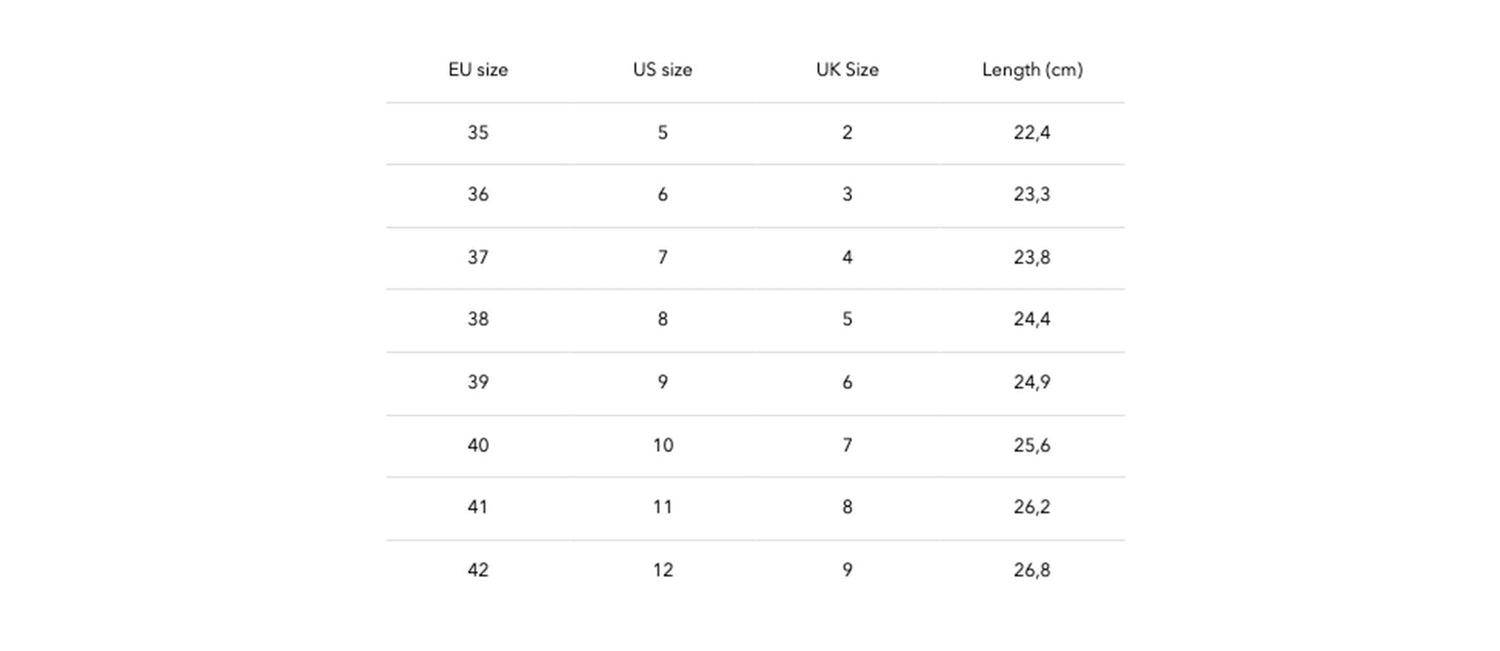 Flattered-Schuhe fallen größengerecht aus, sofern in der Produktbeschreibung unter Größeninformationen nichts anderes angegeben ist. Die entsprechenden Größenangaben findest du weiter unten.